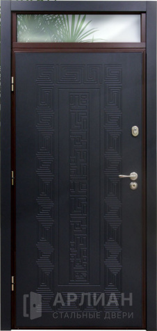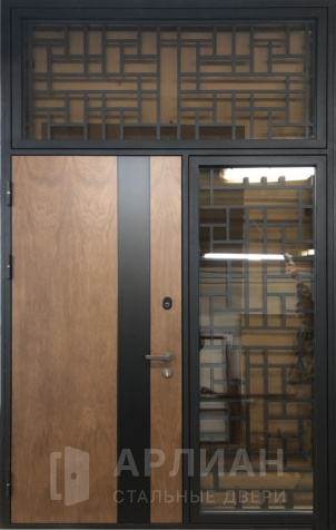 По отделке двери с фрамугой ничем не ограничены: внешнюю поверхность делают в порошковом покрытии шагрень или антик, в цвете по RAL — от строгого серый до эффектных оттенков. Можно заказать черную или серую недорогую дверь в подъезд, где главное — антивандальные свойства, или выбрать дверь для улицы с отделкой массив дерева, винорит, венге и другими декоративными панелями.