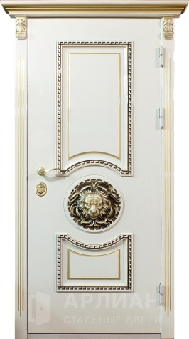 Арочная парадная дверь белого цвета с патиной №362