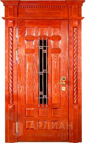 Входная арочная дверь с витражом и решеткой №419