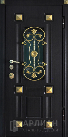 Входная дверь для загородного дома с коваными элементами №115